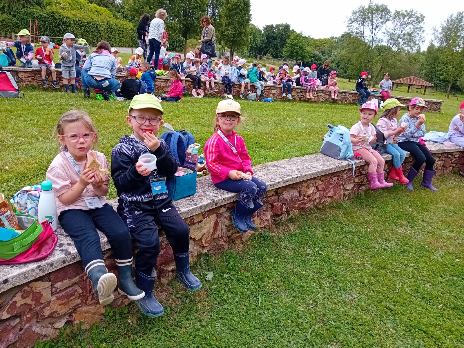 Le mardi 27 mai, les PS-MS ont accueilli les enfants de maternelle des écoles de Bazoges-en-Pareds, de Mouilleron-St-Germain, de Saint-Maurice-le-Girard et de Thouarsais-Bouildroux dans la Vallée Verte pour un temps de jeux. Chaque équipe devait compléter son petit train en réalisant un jeu de chaque pôle (pôle lapin, pôle poule…). Les enfants ont pu faire de la peinture avec de l’eau et de la terre, jouer au Molkky, faire du transvasement avec de l’eau, faire de la musique avec des éléments de la nature, ramasser les déchets…