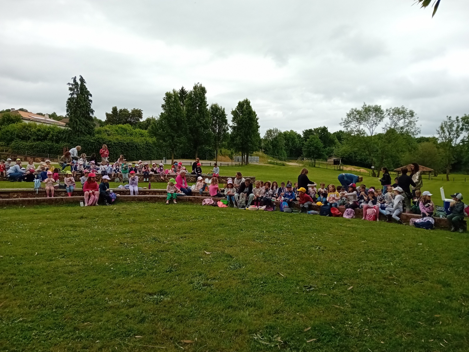 Le mardi 27 mai, les PS-MS ont accueilli les enfants de maternelle des écoles de Bazoges-en-Pareds, de Mouilleron-St-Germain, de Saint-Maurice-le-Girard et de Thouarsais-Bouildroux dans la Vallée Verte pour un temps de jeux. Chaque équipe devait compléter son petit train en réalisant un jeu de chaque pôle (pôle lapin, pôle poule…). Les enfants ont pu faire de la peinture avec de l’eau et de la terre, jouer au Molkky, faire du transvasement avec de l’eau, faire de la musique avec des éléments de la nature, ramasser les déchets…