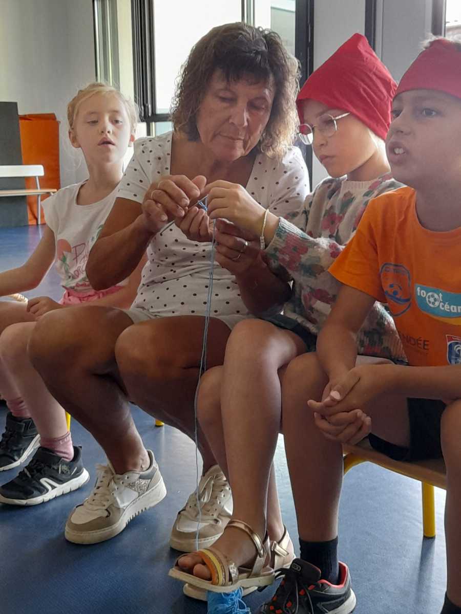 Les enfants ont pu écouter les explications, observer les outils ou objets en lien avec chaque activité et même essayer le crochet et la fabrication de corde.