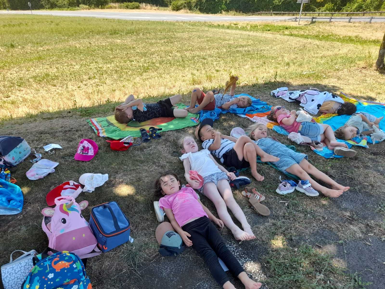 Avant de pique-niquer, les enfants devaient relever le défi de se mettre par niveau : tous les CM2 ensemble, tous les CM1 ensemble…