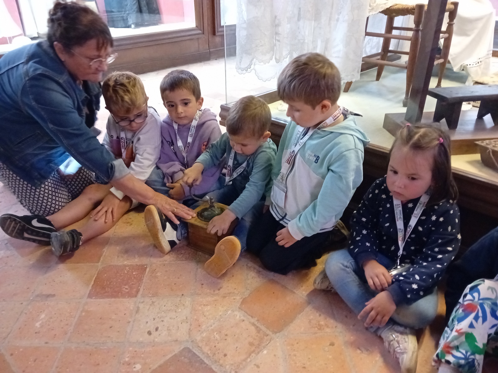 Les PS-MS-GS-CP ont pu découvrir le musée à partir de l’histoire des 3 petits cochons (pour les métiers de tisserand, de menuisier et de meunier) et l’histoire du petit chaperon rouge (pour découvrir les habits la cuisine d’autrefois).