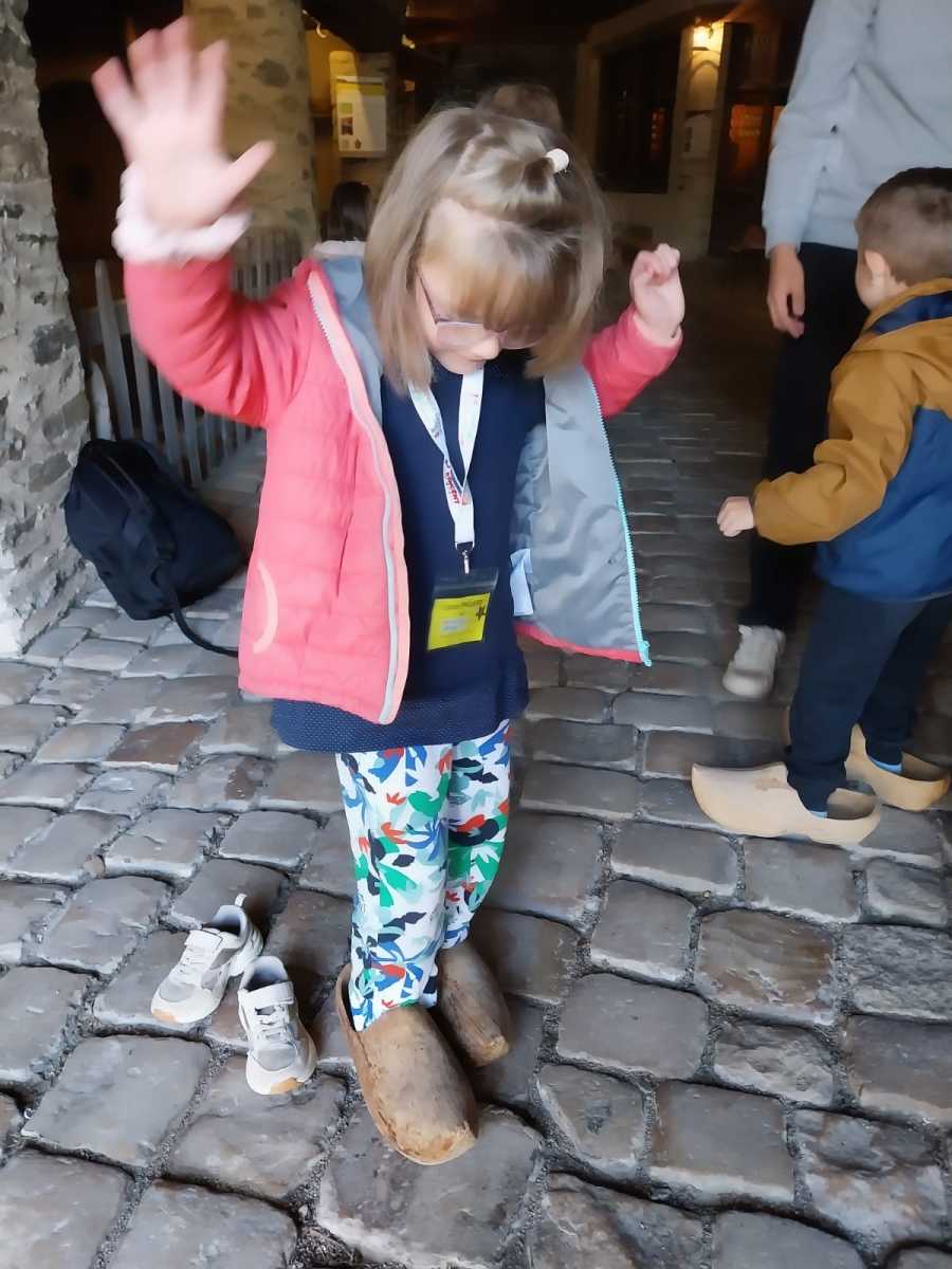 Les PS-MS-GS-CP ont pu découvrir le musée à partir de l’histoire des 3 petits cochons (pour les métiers de tisserand, de menuisier et de meunier) et l’histoire du petit chaperon rouge (pour découvrir les habits la cuisine d’autrefois).