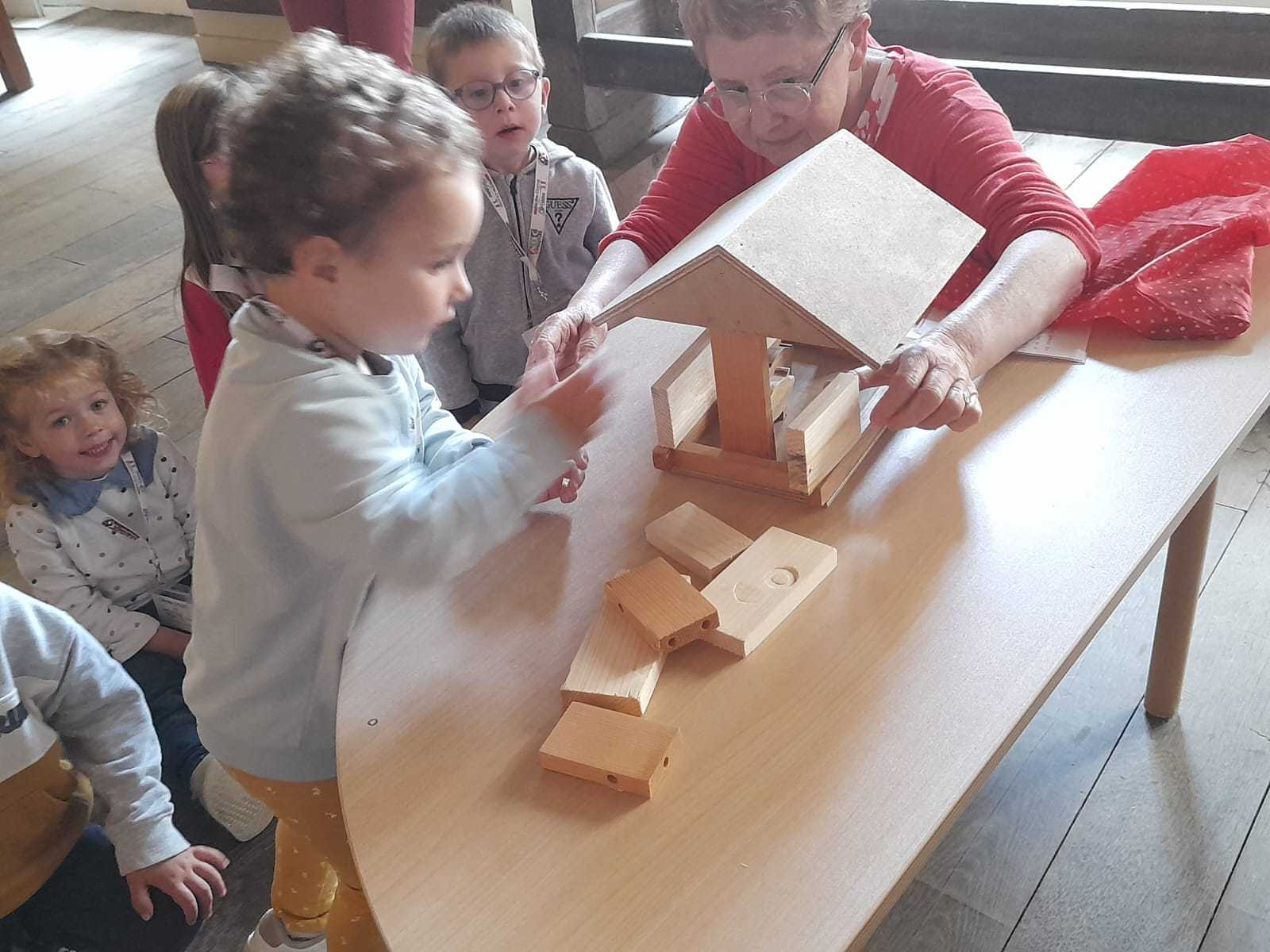 Les PS-MS-GS-CP ont pu découvrir le musée à partir de l’histoire des 3 petits cochons (pour les métiers de tisserand, de menuisier et de meunier) et l’histoire du petit chaperon rouge (pour découvrir les habits la cuisine d’autrefois).