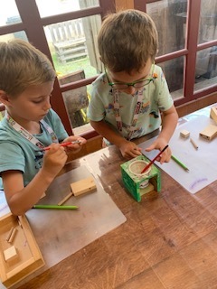 Les PS-MS-GS-CP ont réalisé des robots en bois, les CE des avions et les CM des cadres/vitraux.