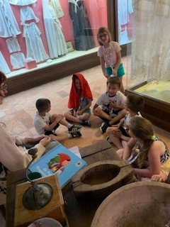 Les PS-MS-GS-CP ont pu découvrir le musée à partir de l’histoire des 3 petits cochons (pour les métiers de tisserand, de menuisier et de meunier) et l’histoire du petit chaperon rouge (pour découvrir les habits la cuisine d’autrefois).