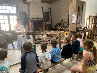 Les PS-MS-GS-CP ont pu découvrir le musée à partir de l’histoire des 3 petits cochons (pour les métiers de tisserand, de menuisier et de meunier) et l’histoire du petit chaperon rouge (pour découvrir les habits la cuisine d’autrefois).