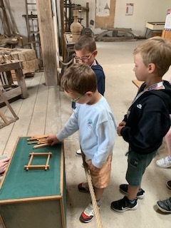 Les PS-MS-GS-CP ont pu découvrir le musée à partir de l’histoire des 3 petits cochons (pour les métiers de tisserand, de menuisier et de meunier) et l’histoire du petit chaperon rouge (pour découvrir les habits la cuisine d’autrefois).
