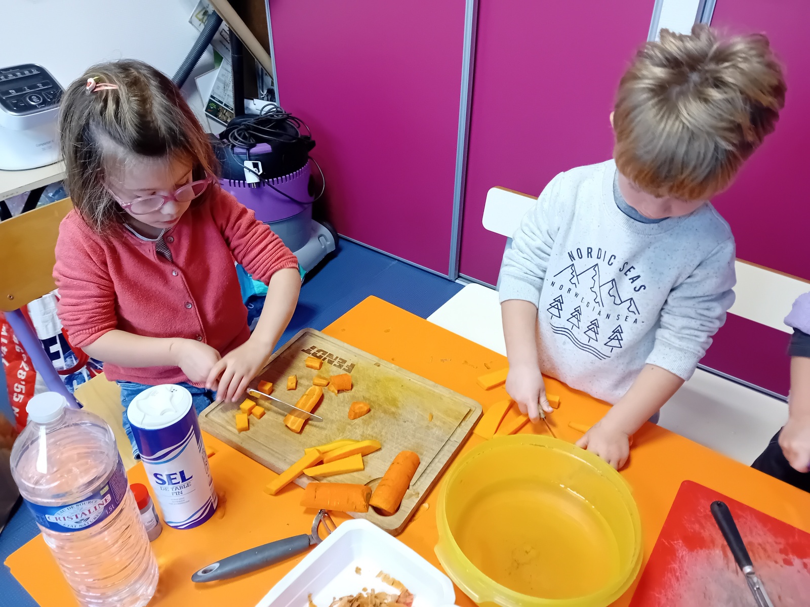 Le 14 novembre, les élèves de PS-MS ont réalisé de la soupe de potimarron et de butternut.