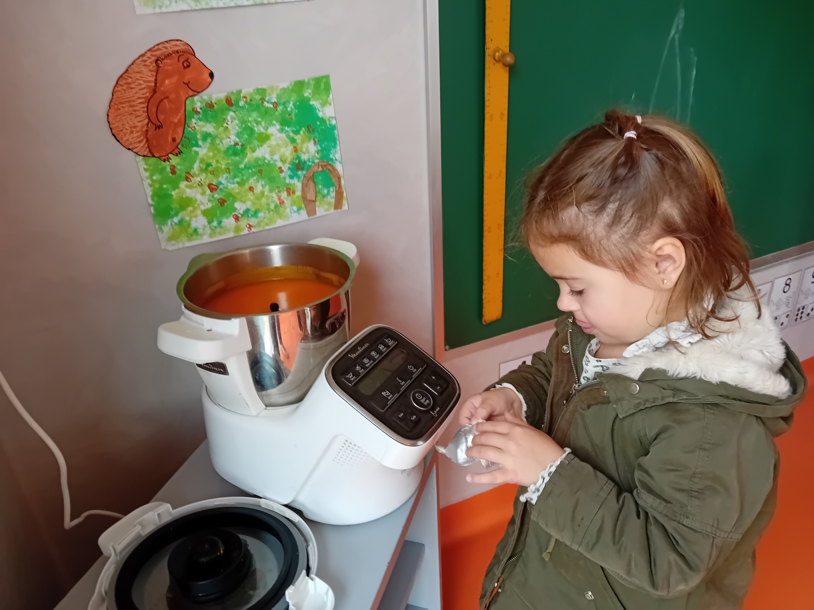 Le 14 novembre, les élèves de PS-MS ont réalisé de la soupe de potimarron et de butternut.