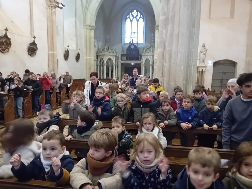 Les enfants de l’école accompagnés par les enseignants, ASEM, stagiaires, catéchistes, parents, grands-parents ont pu vivre une célébration pour fêter Noël le vendredi 19 décembre.