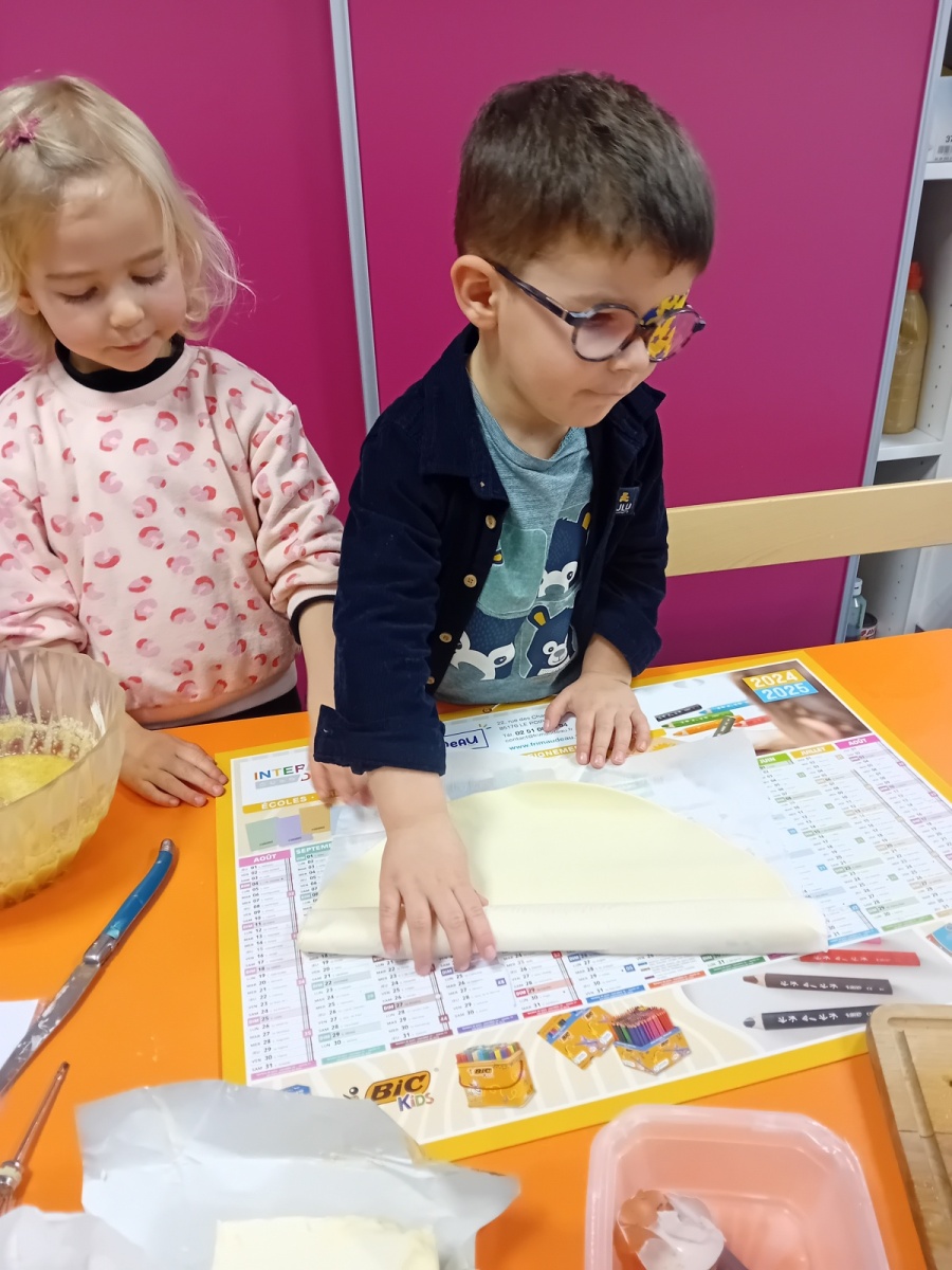 Ils ont coupé l’ananas et le beurre, ils ont mélangé la poudre d’amande avec les œufs et le sucre, ils ont déroulé la pâte, posé une fève et décoré le dessus des galettes. Les parents et les enfants ont pu se régaler lors des portes ouvertes.