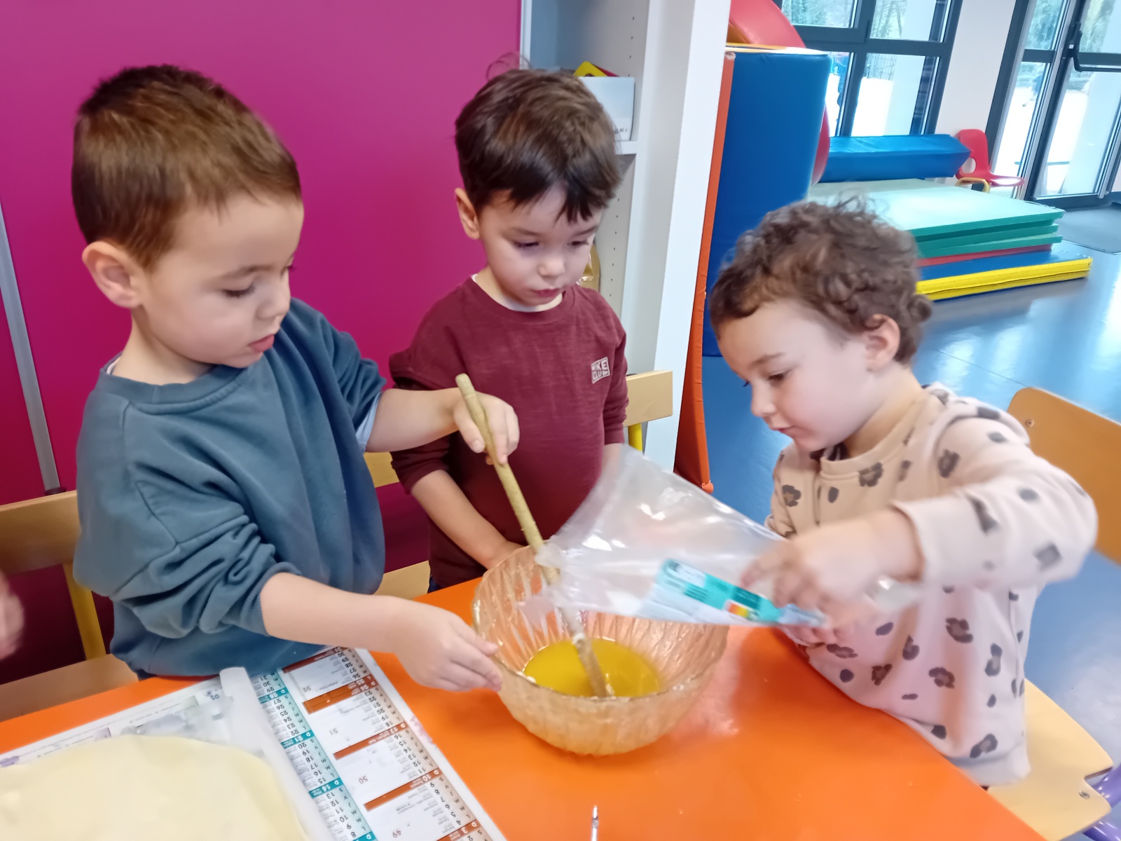 Ils ont coupé l’ananas et le beurre, ils ont mélangé la poudre d’amande avec les œufs et le sucre, ils ont déroulé la pâte, posé une fève et décoré le dessus des galettes. Les parents et les enfants ont pu se régaler lors des portes ouvertes.