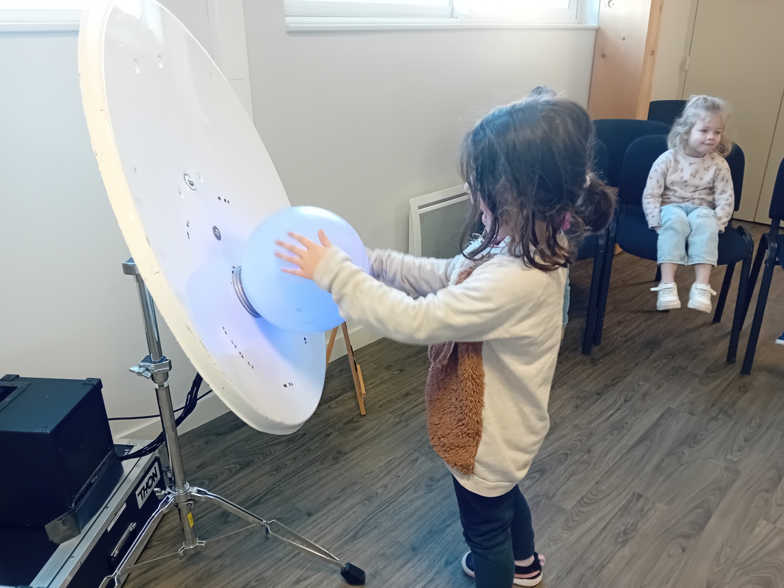 Ils ont d’abord écouté Danielle qui leur a montré comment faire des sons avec les différentes sculptures puis ils ont pu les utiliser. Soit en passant les mains autour ou devant, soit en faisant glisser leurs doigts mouillés sur des tiges, soit en tapant avec des bâtons…