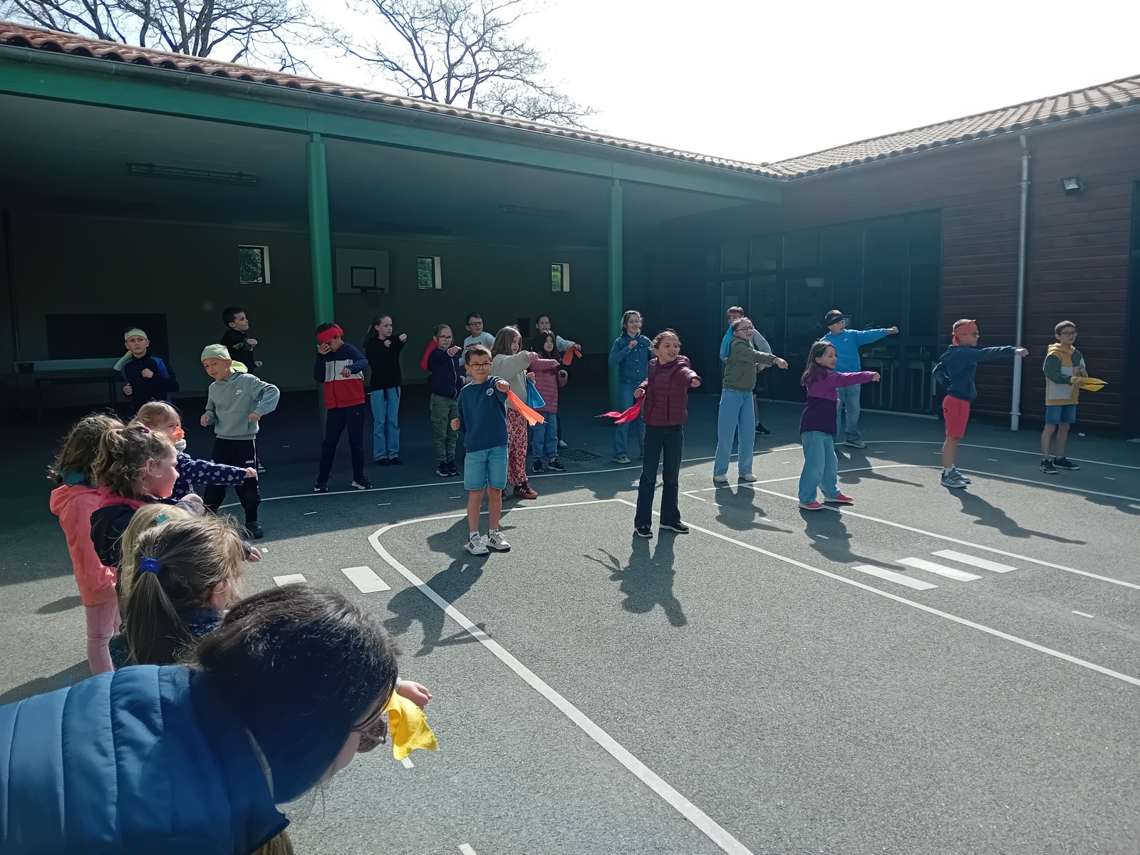 Pour fêter cet anniversaire, nous avons vécu un temps fort le vendredi 10 avril 2026. Tous les élèves se sont rassemblés et nous avons d’abord vécu un échauffement guidé par les élèves de CE2-CM1-CM2 de la classe de Véronique.