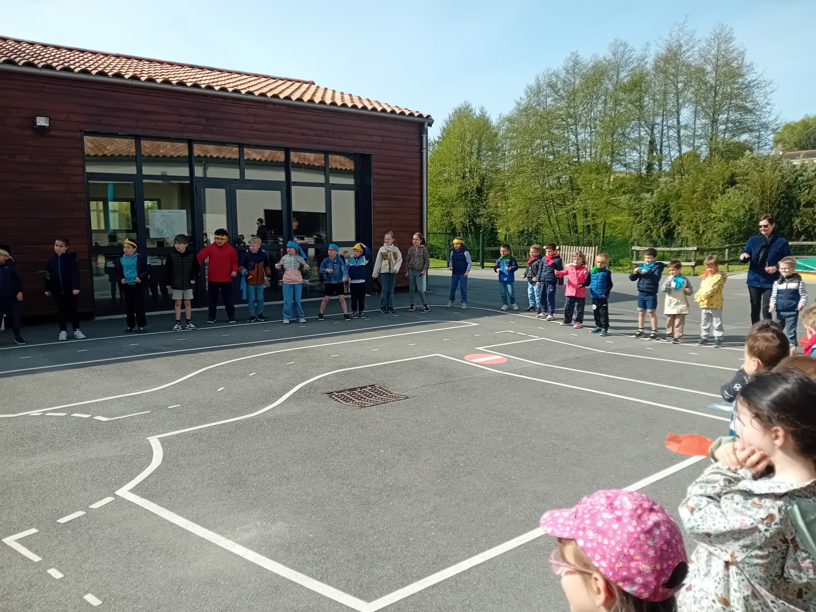 Pour fêter cet anniversaire, nous avons vécu un temps fort le vendredi 10 avril 2026. Tous les élèves se sont rassemblés et nous avons d’abord vécu un échauffement guidé par les élèves de CE2-CM1-CM2 de la classe de Véronique.