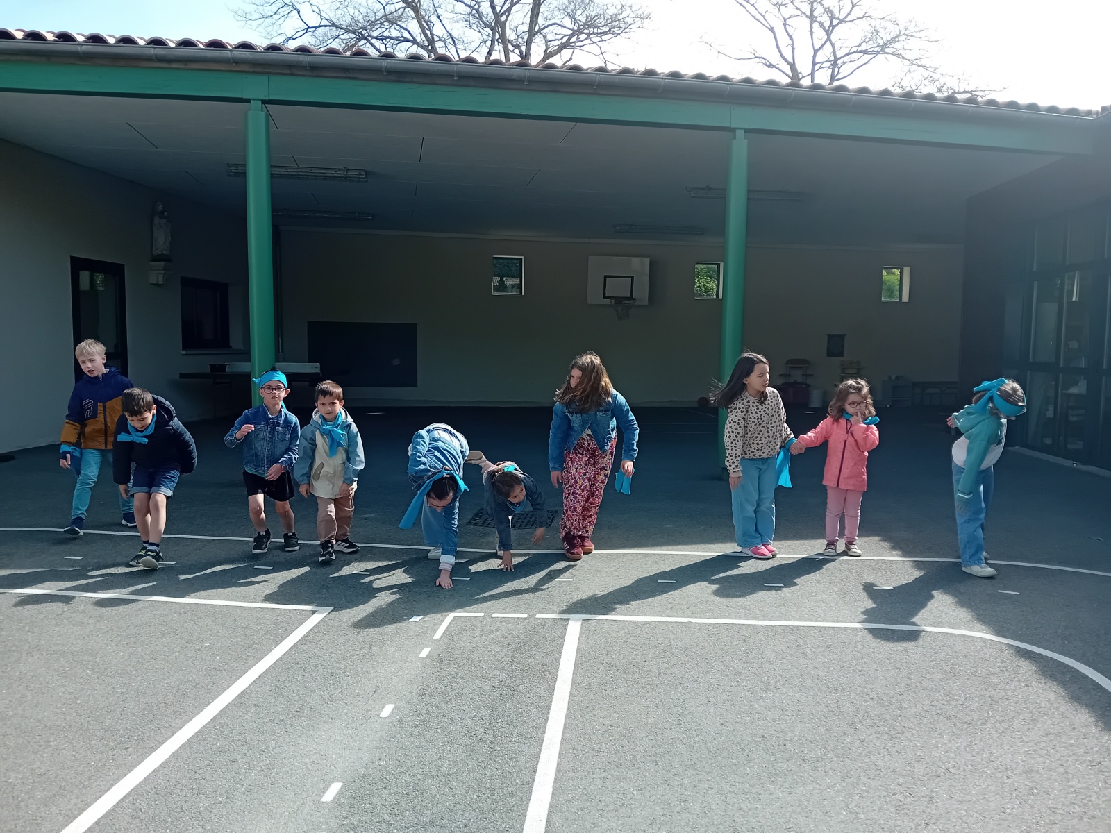 Pour fêter cet anniversaire, nous avons vécu un temps fort le vendredi 10 avril 2026. Tous les élèves se sont rassemblés et nous avons d’abord vécu un échauffement guidé par les élèves de CE2-CM1-CM2 de la classe de Véronique.