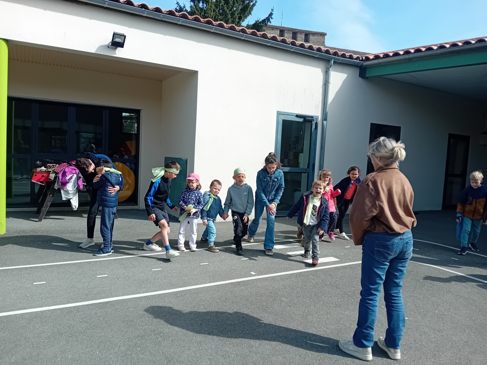 Pour fêter cet anniversaire, nous avons vécu un temps fort le vendredi 10 avril 2026. Tous les élèves se sont rassemblés et nous avons d’abord vécu un échauffement guidé par les élèves de CE2-CM1-CM2 de la classe de Véronique.