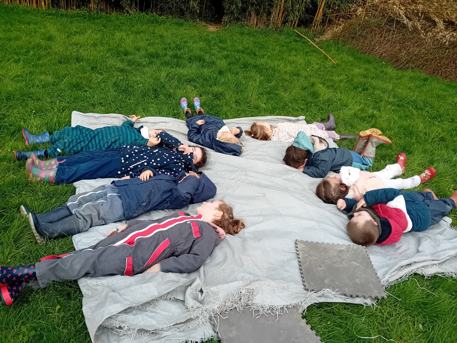 Voici quelques photos et vidéos des temps d’école dehors de mars-avril où nous avons découvert de nombreux instruments de musique, écouté les bruits de la nature, fait un Memory sonore avec des éléments de la nature, dessiné des fleurs avec de la terre et de l’eau, nous avons travaillé sur l’histoire de Pierre et le loup, nous avons appris les couleurs en anglais…