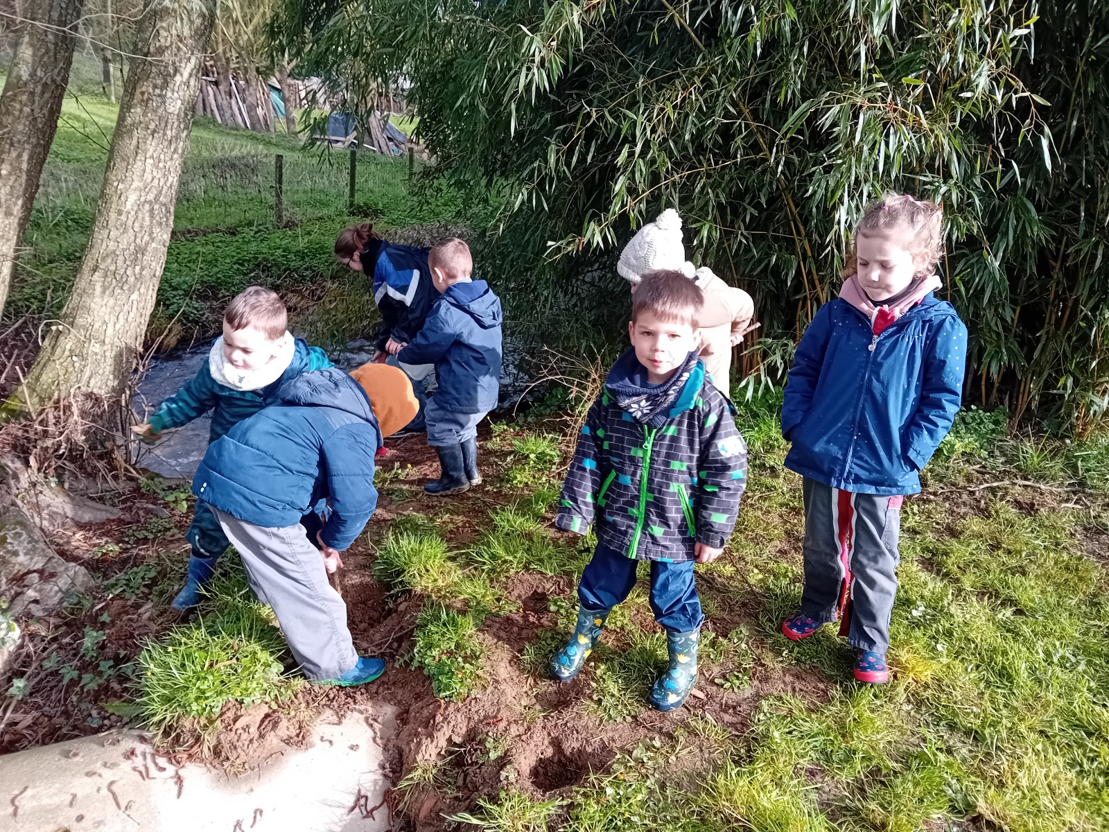 Voici quelques photos et vidéos des temps d’école dehors de mars-avril où nous avons découvert de nombreux instruments de musique, écouté les bruits de la nature, fait un Memory sonore avec des éléments de la nature, dessiné des fleurs avec de la terre et de l’eau, nous avons travaillé sur l’histoire de Pierre et le loup, nous avons appris les couleurs en anglais…