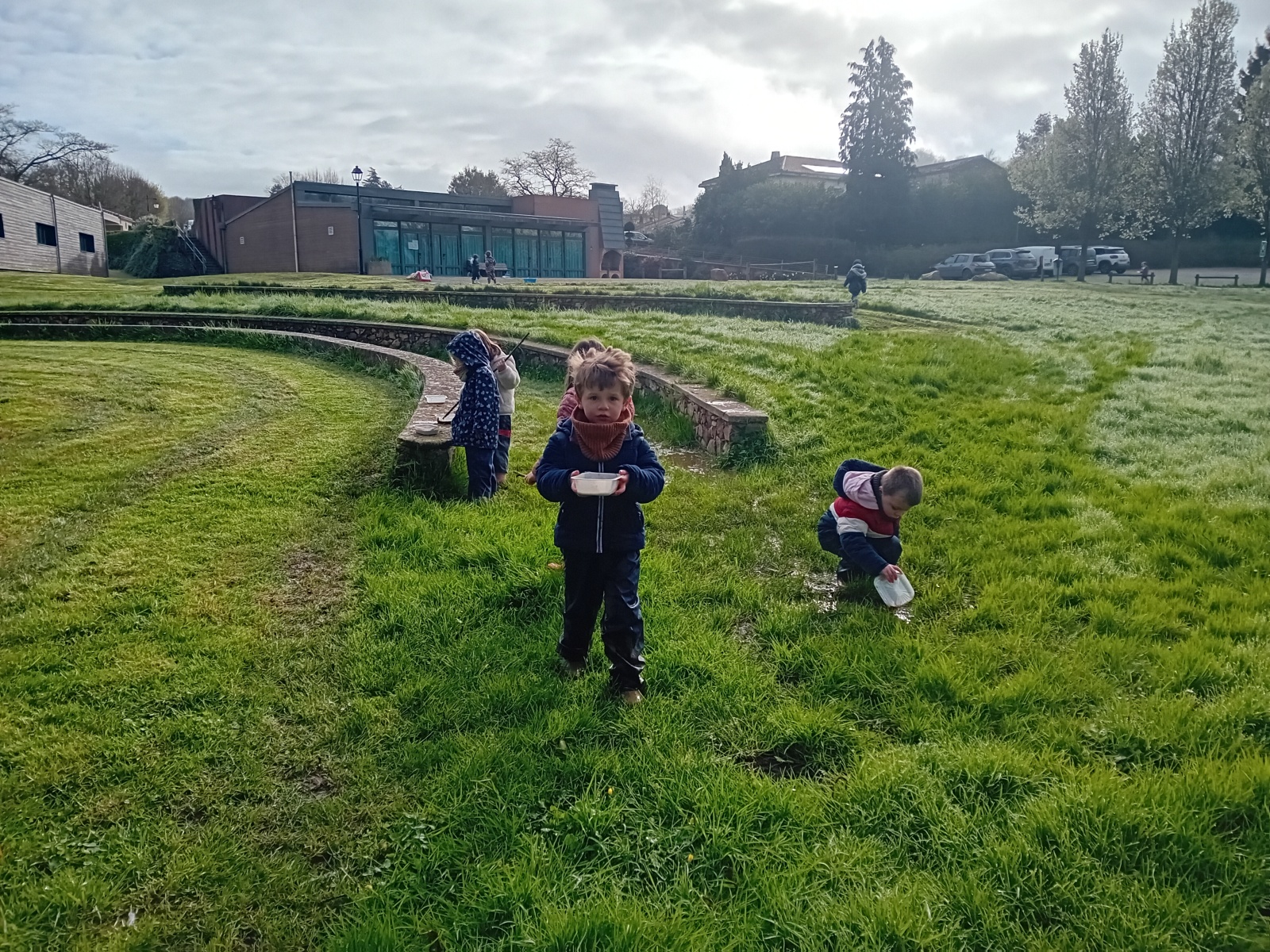 Voici quelques photos et vidéos des temps d’école dehors de mars-avril où nous avons découvert de nombreux instruments de musique, écouté les bruits de la nature, fait un Memory sonore avec des éléments de la nature, dessiné des fleurs avec de la terre et de l’eau, nous avons travaillé sur l’histoire de Pierre et le loup, nous avons appris les couleurs en anglais…
