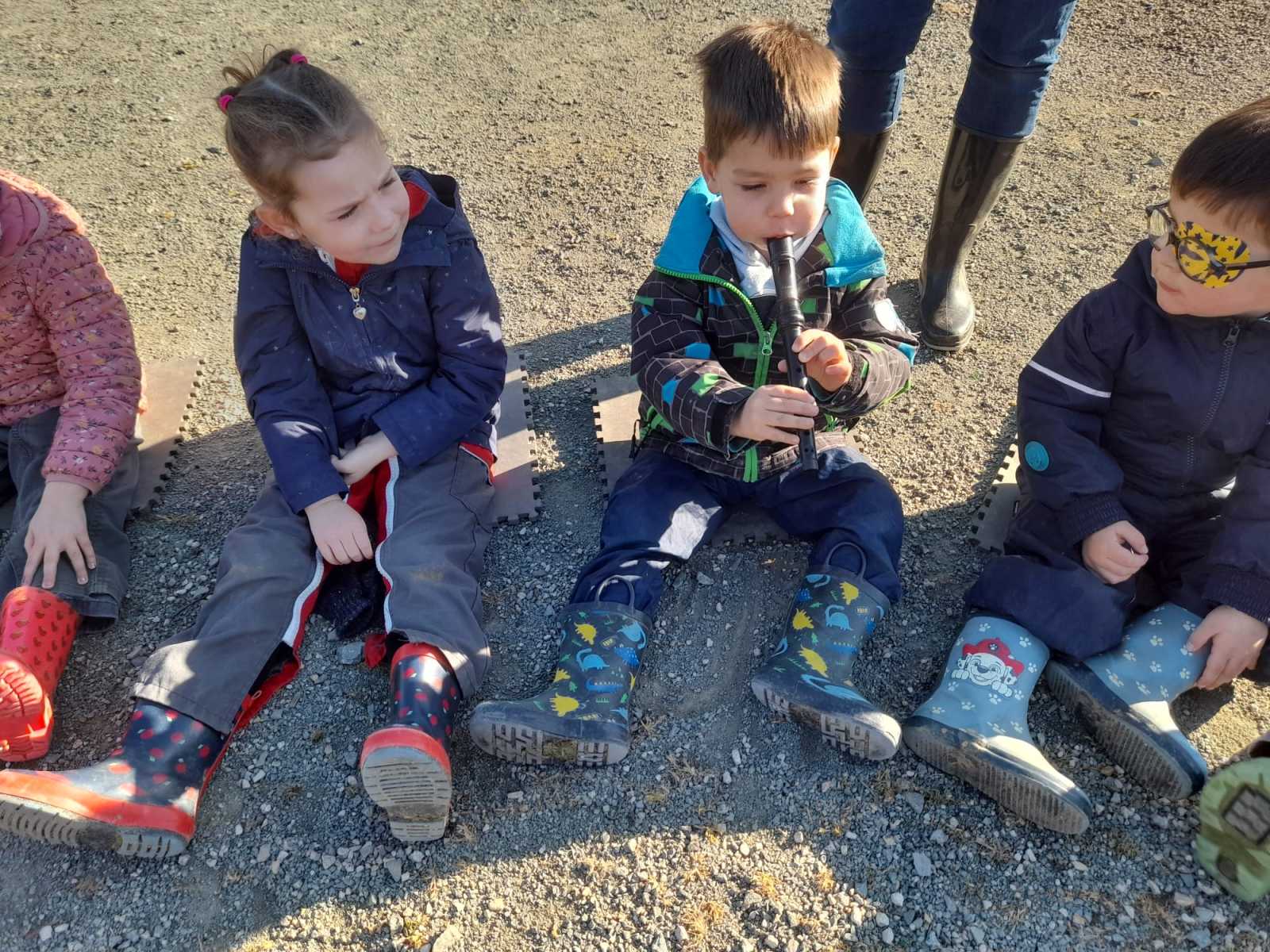 Voici quelques photos et vidéos des temps d’école dehors de mars-avril où nous avons découvert de nombreux instruments de musique, écouté les bruits de la nature, fait un Memory sonore avec des éléments de la nature, dessiné des fleurs avec de la terre et de l’eau, nous avons travaillé sur l’histoire de Pierre et le loup, nous avons appris les couleurs en anglais…
